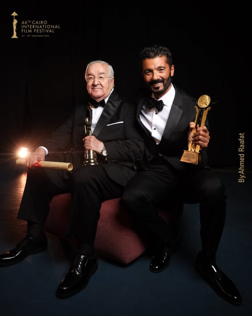 في البداية، عبّر المخرج المصري عن سعادته البالغة بحفاوة استقباله من الحضور على مسرح حفل افتتاح مهرجان القاهرة السينمائي، مؤكدًا أنه شعر بفرحة غامرة بحصوله على جائزة إنجاز العُمر من هذا المهرجان العريق، كما شعر برهبة ودهشة من حجم الترحيب الذي تلقّاه، ولم يتوقع الترحيب والمشاعر الكبيرة التي عبّر عنها الحضور تجاهه.