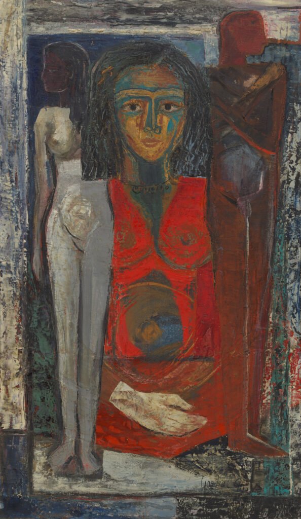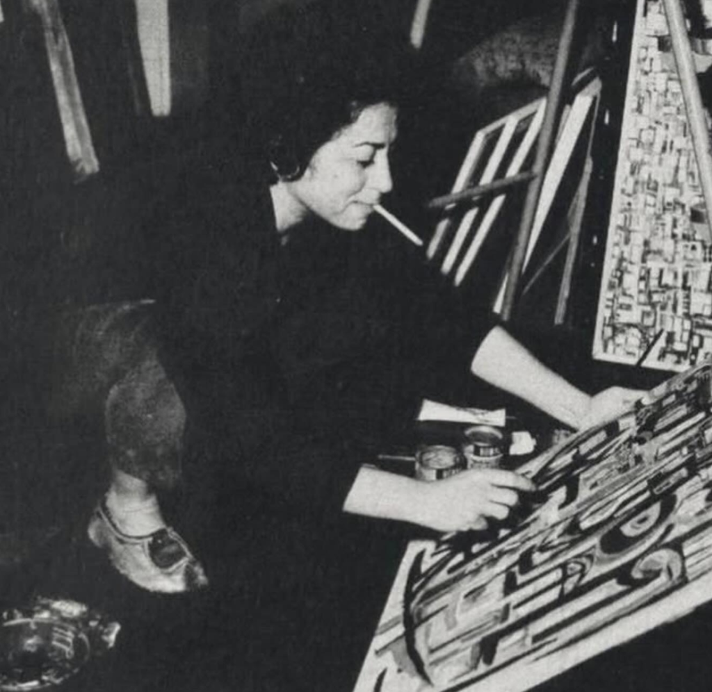 She lived through two kings, four wars, multiple revolutions, and seven presidencies. She painted through all of it. Her early work addressed women’s rights, class, Western imperialism, and patriarchy at a time when those were not comfortable subjects in any room. She mixed the visual language of ancient Egypt with influences from Mexican muralism and expressionism and made something that belonged entirely to her, grounded in this specific soil, speaking to this specific moment.