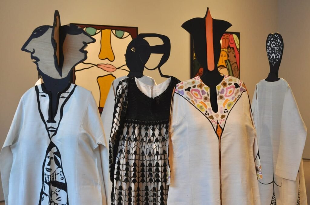 Paris also brought her into fashion’s orbit. In 1979, Caland collaborated with designer Pierre Cardin, creating a line of caftans, the Nour collection, that were displayed at Espace Cardin. When Cardin told her he liked her clothes, she replied simply: “So do I.” That was Caland in a sentence.