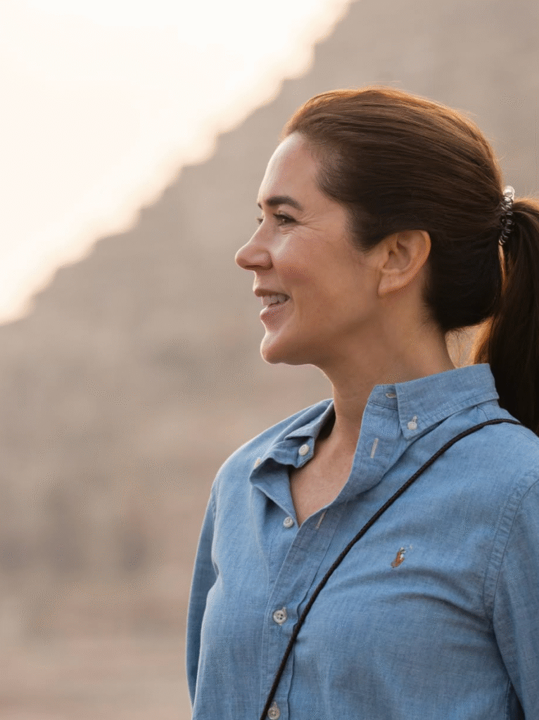 Queen Mary’s Casual Look: Shirt Style and Grace at the Giza Pyramids